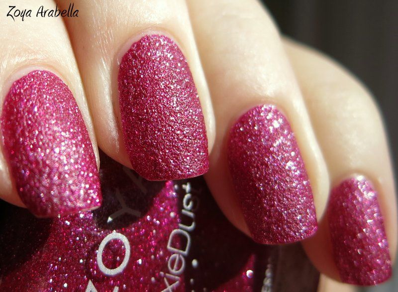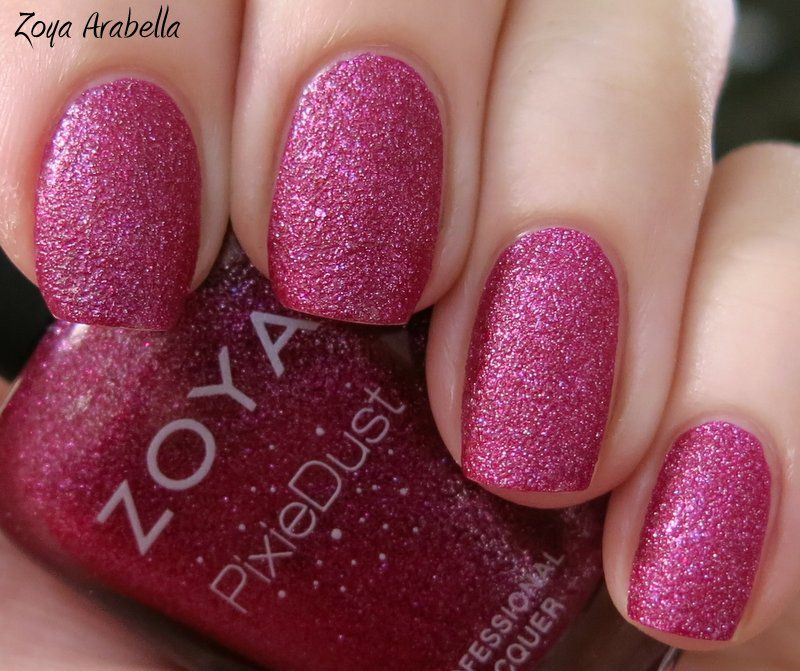Zoya Arabella is from the Fall 2013 Pixie Dust collection. It is a beautiful raspberry color with light pink, almost silver, glitter particles. Application was fantastic - nice consistency, very easy to control, and built to complete opacity in just 2 coats. Once it dries it has a subtle sheen to it; less matte than some of the other PD's, but it doesn't make it any less beautiful. I like colors like this, so it was an easy decision to pick this one up! Enjoy - >^..^<