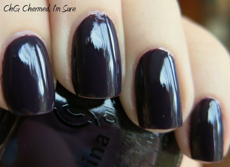 ChG Charmed, I'm Sure is a beautiful vampy eggplant creme from the fall 2013 Autumn Nights collection. Application was very nice - perfect consistency, easy to control, and fully opaque in just 2 coats. I usually try to wear cremes on cloudy days, leaving the shimmers for the sun, so these pics were all taken on an overcast day, but you get the idea. It is a very dark color, but never looks black, and I'm loving the look! Enjoy - >^..^<
