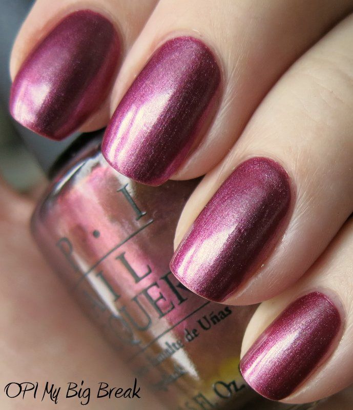 OPI My Big Break is from the Hollywood Holiday 2007 collection. It is a beautiful dusty rose shimmer, with a slight duochrome in the bottle that translates into a mild pink shift on the nail, as it is not a strong duo. Application was very nice - the formula was smooth, the brush is nice, it was easy to control, and built nicely in opacity. I haven't worn this one in a while, and was thinking of purging it, but I decided to give it another shot, and I actually enjoyed it! So what if it's a "grandma" color - I think it's very soothing and yet not boring. Enjoy - >^..^<