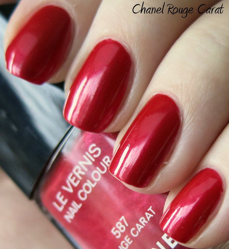 Chanel Rouge Carat is a nice slightly muted red shimmer. Nothing special, but it has a pink shimmer in the bottle that doesn't really translate well onto the nail. But nobody does microshimmer like Chanel, and the end result is a glowing effect rather than a metallic finish you get with some shimmers out there. Enjoy - >^..^<