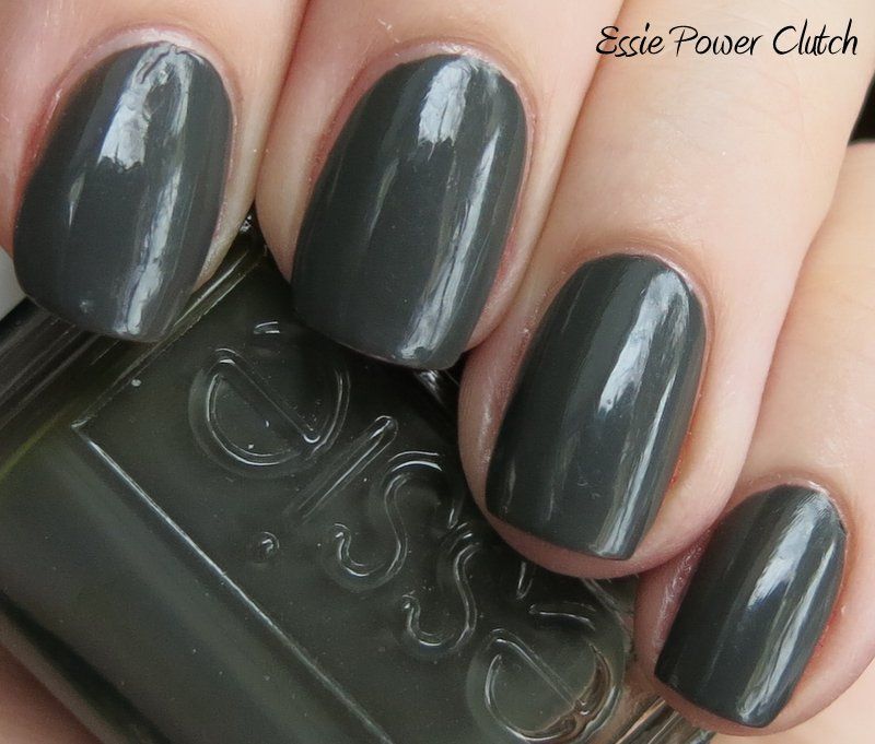 Essie Power Clutch is from fall 2011. It's a deep grey green creme, somewhat dusty and murky looking, and it leans dark but not vampy. It has a very nice formula - it feels a little thin on the first coat, but is pigmented enough that I only needed 2 coats here for full coverage. I last wore this one in 2011, and I'm not sure why I haven't worn it since - it's very pretty! Enjoy - >^..^<