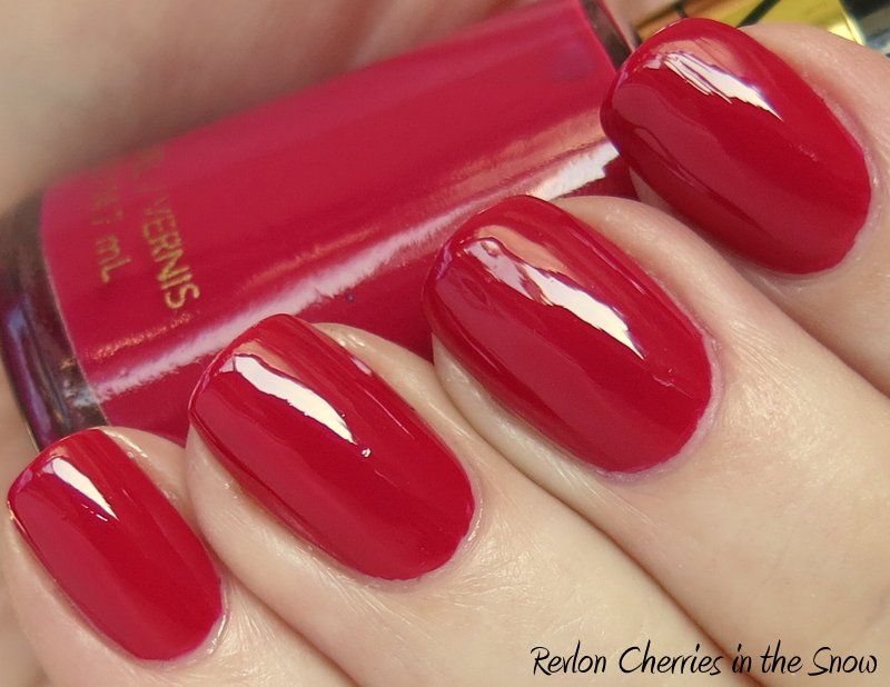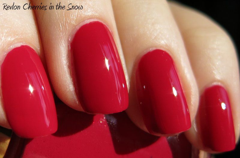 Revlon Cherries in the Snow is a classic color - it's been in the core line as long as I can remember, and for good reason. It is a pink-based red creme with a slightly jelly-ish feel, definitely cool in tone, but not a hot pink - I still call it red. I recently heard pink-based reds referred to as a "mom" color, so I'm not sure if I should be offended! That said, this was my grandmother's signature color, so it will always hold a special place in my heart. But I also think it looks modern, chic, and classic - and I like the cooler tone for this time of year, especially as we approach Valentine's Day. Application was good - nice formula, easy to control, didn't streak, but it did take 3 coats to build to my opacity liking since it does have a slight jelly quality. I'm a sucker for red cremes, and this one is beautiful! Enjoy - >^..^<