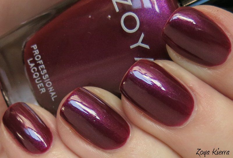 Zoya Kierra is a lovely wine shimmer with purple undertones. It has a subtle flecked shimmer, not a metallic finish as some shimmers do. It reminds me of an old OPI called Don't Wine... Yukon Do It (Canadian collection, I believe), although I haven't compared them side by side. Application was average - the formula was a bit thin and slightly streaky, so it took 3 coats to reach an opacity and hue saturation I was happy with, but it was a beautiful result and by no means the worst I've ever dealt with. I love it in the sun, as the shimmer is just beautiful - not in your face, but rather a sophisticated understated look, while in the shade the shimmer gives it a subtle pearl finish - just lovely. I really like colors and finishes like this, and I do believe I'll wear it for another day! Enjoy - >^..^<