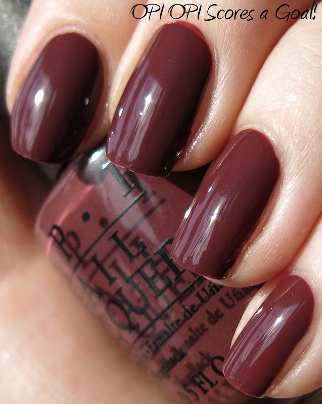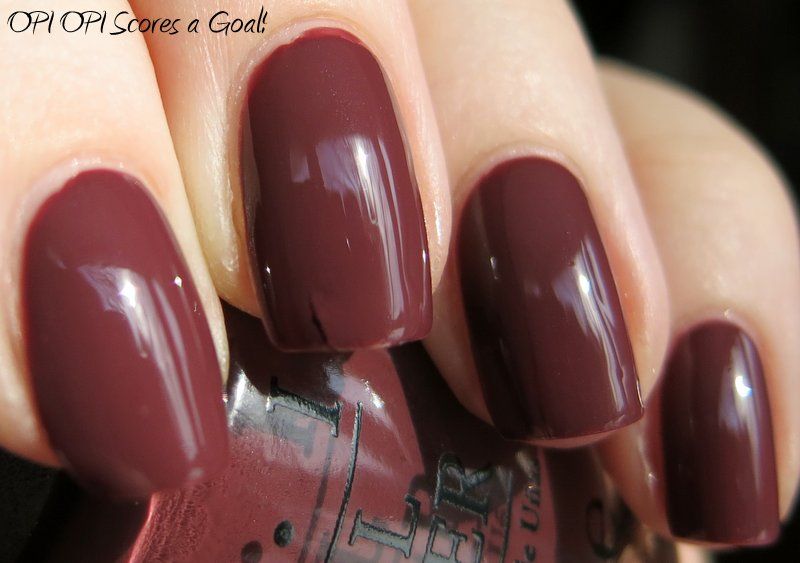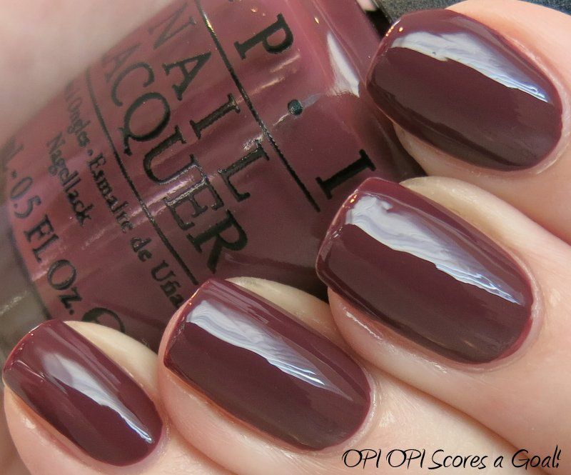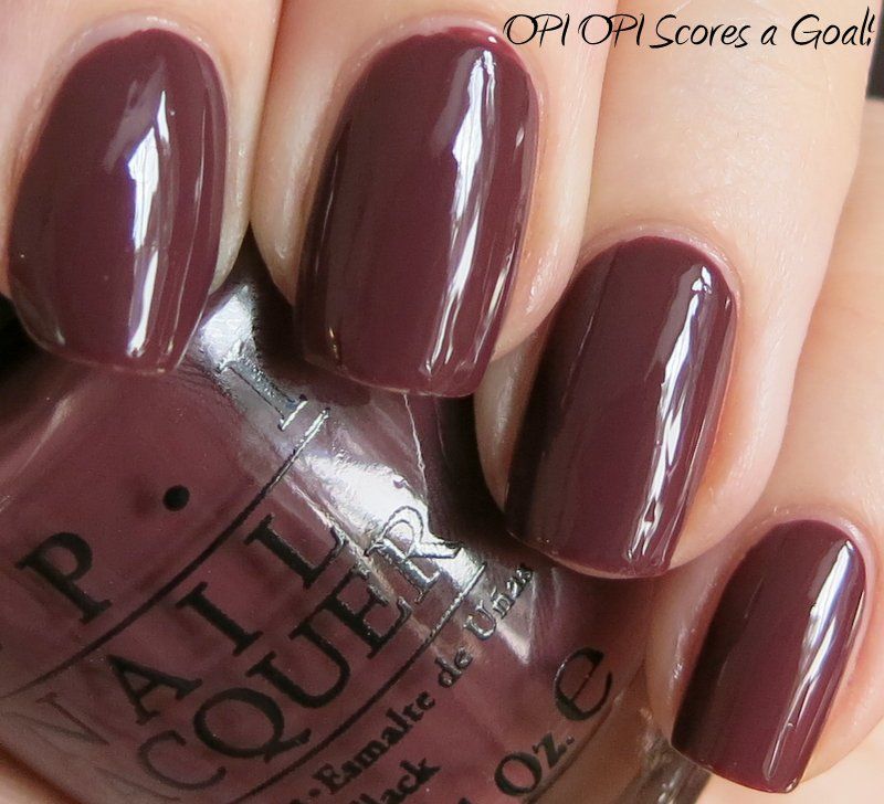 OPI OPI Scores a Goal! is from the new Brazil collection for spring 2014. It has been described as a raisin color - and I guess that's accurate - it's a milk chocolate creme with purple undertones. Application was good - the formula was nice and creamy, easy to control, minimal streaking, and built nicely in opacity (I used 2 coats here). I like the color - it's a little unusual, a step off the normal greige / grey / brown. Enjoy - >^..^<