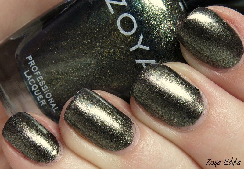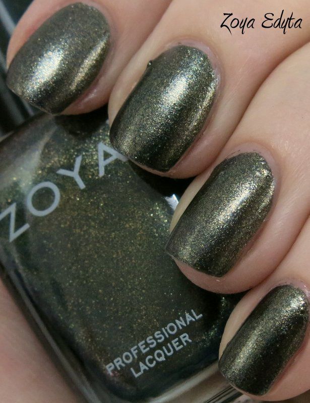 Zoya Edyta is a lovely muted forest green with gold shimmer that came out a few years ago. I wish the sun had come out as promised to show off the shimmer, but alas - it did not. Application was ok - the formula seemed nice yet I had some cuticle drag, but it built nicely in opacity. I have to apologize for the horrid state of the polish near my cuticles - that mess is compliments of some 4-legged furry friends that decided it would be a good time to get loved on! I promise to re-swatch this one on a sunny day with no helpers. Enjoy - >^..^<
