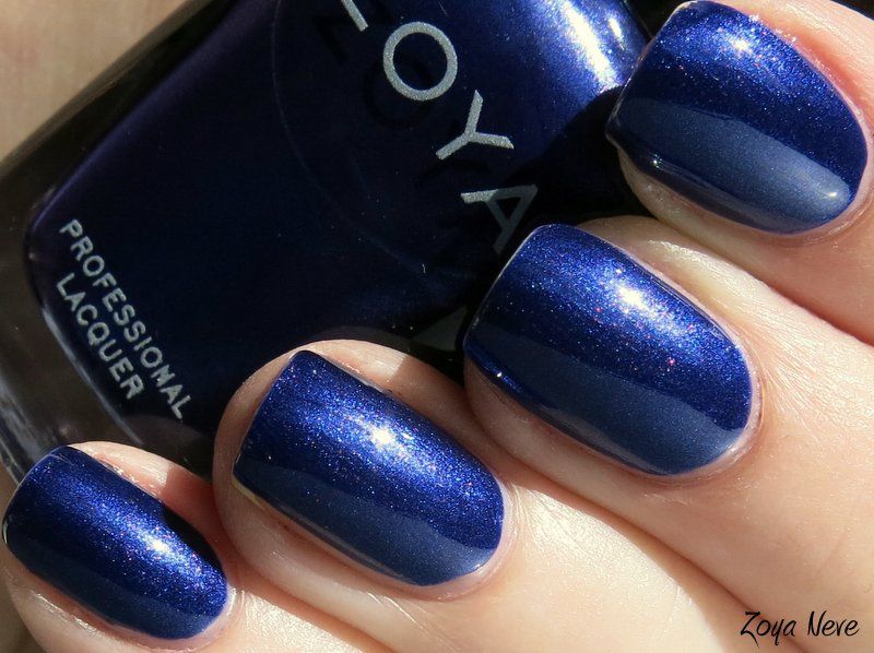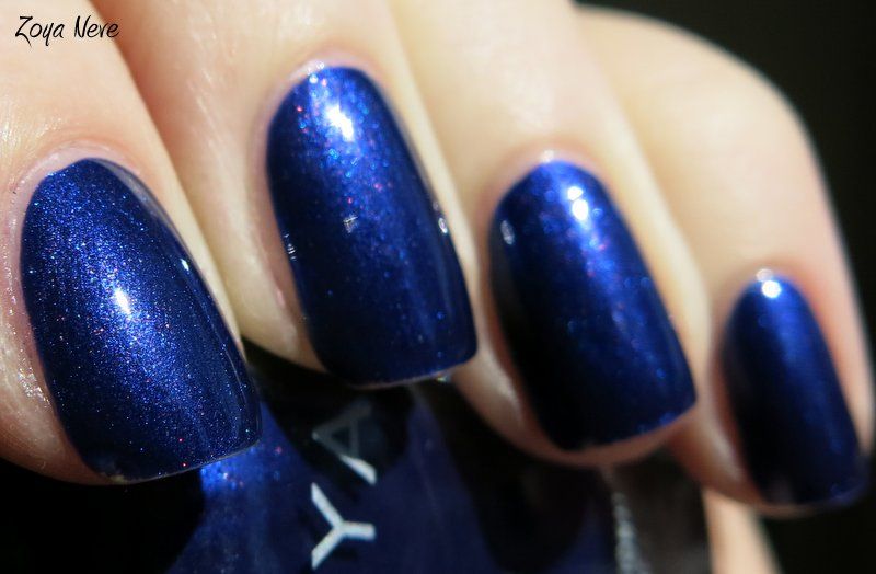 Zoya Neve is a beautiful blue shimmer I recently picked up. It's a little darker than royal, but not quite navy, with a hint of a purple undertone, and has some faint purple microshimmer that unfortunately doesn't translate well on the nail. Application was nice, as with most Zoya's; the formula was smooth and was almost a 1 coater, but I used 2 for full opacity and to even out thinner spots. It's a very pretty color - like the color of ink in a ball point pen. Very nice! Enjoy - >^..^<