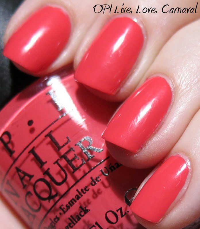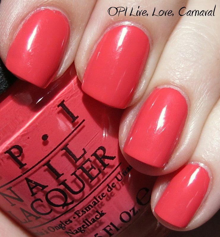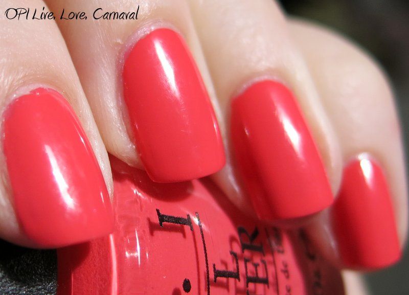 OPI Live. Love. Carnaval is a beautiful coral creme from the Spring / Summer 2014 Brazil collection. Like many pastel cremes, application left some to be desired - it was a bit thick and streaky, and I could still see uneven areas after it dried. The color itself is very nice, though - very cheery and happy, which is much needed after the long, cold winter we've had. It isn't a very unique shade, and I'm sure it's dupeable, so it's not a must-have color for me. Enjoy - >^..^<