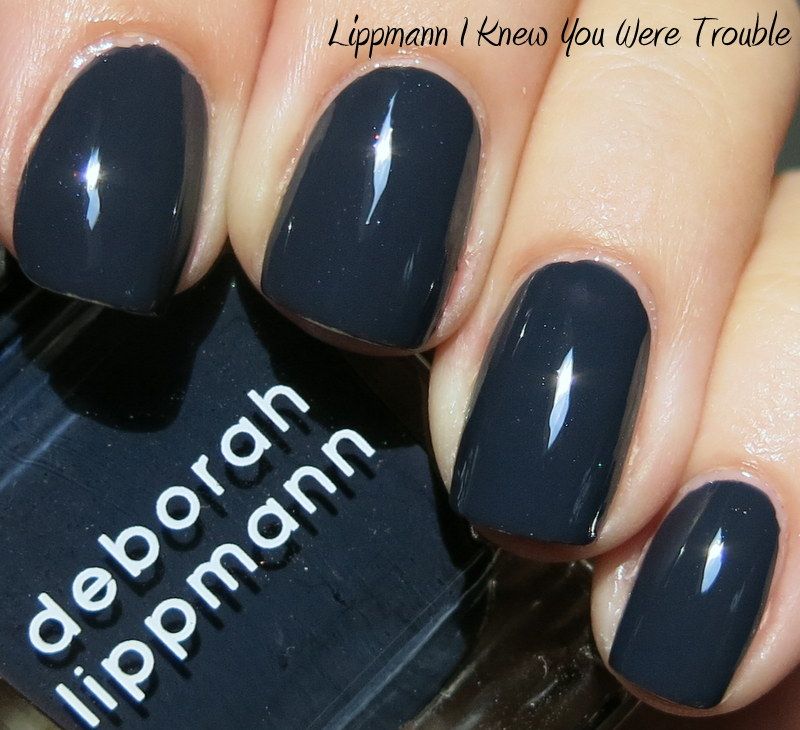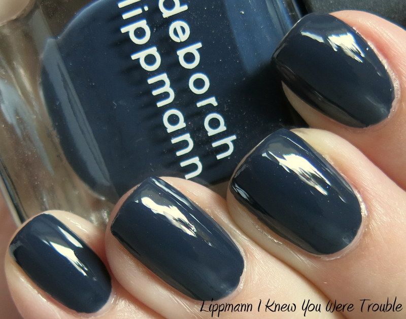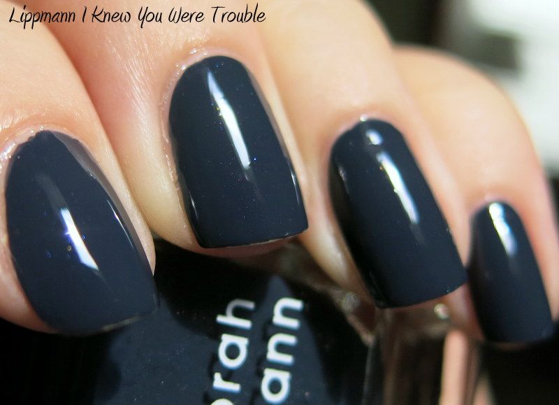 Lippmann I Knew You Were Trouble - I swear it is a creme... a beautiful slightly dusty navy. I think my topcoat got contaminated, as I see little sparkles in these shots, but it is a true creme. Lovely application - beautiful polish.