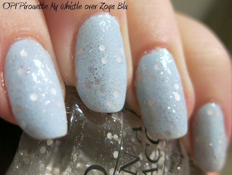 OPI Pirouette My Whistle over Zoya Blu